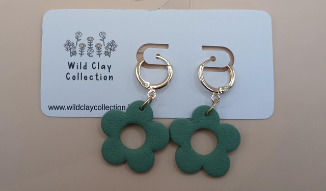 Abby is made from Polymer Clay with a 14k gold filled hoop. The hoop is 13.5mm diameter.