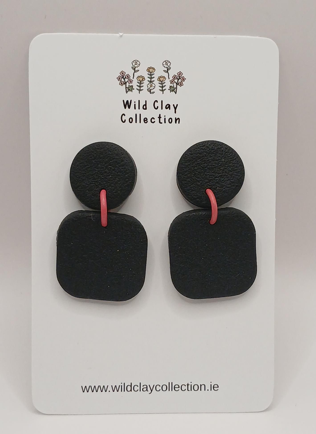 Black Square with circle top Dangle. Made from polymer clay with a surgical steel top.