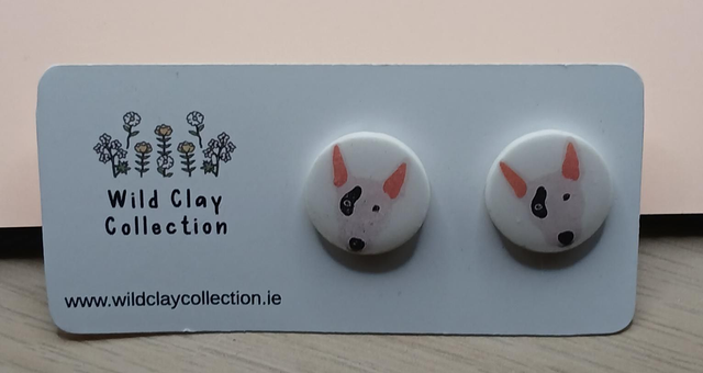 Bull Terrier Dog Stud Earring. Made from Polymer Clay with stainless steel finding.