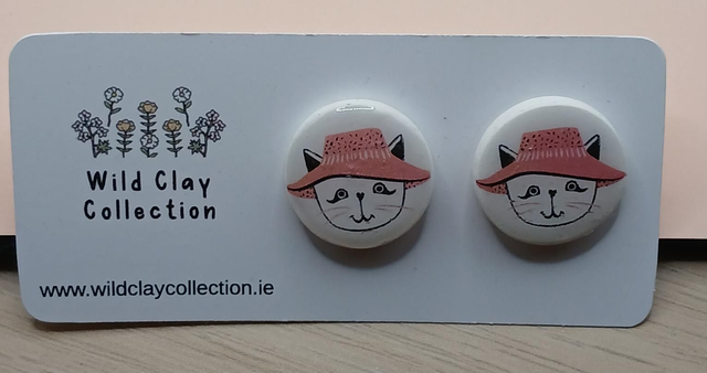 Cat with a Hat stud earring. Made from Polymer Clay with stainless steel finding.