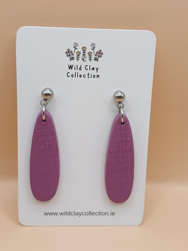 Diane, a timeless long earring. Made from polymer clay with a stainless steel ball top.