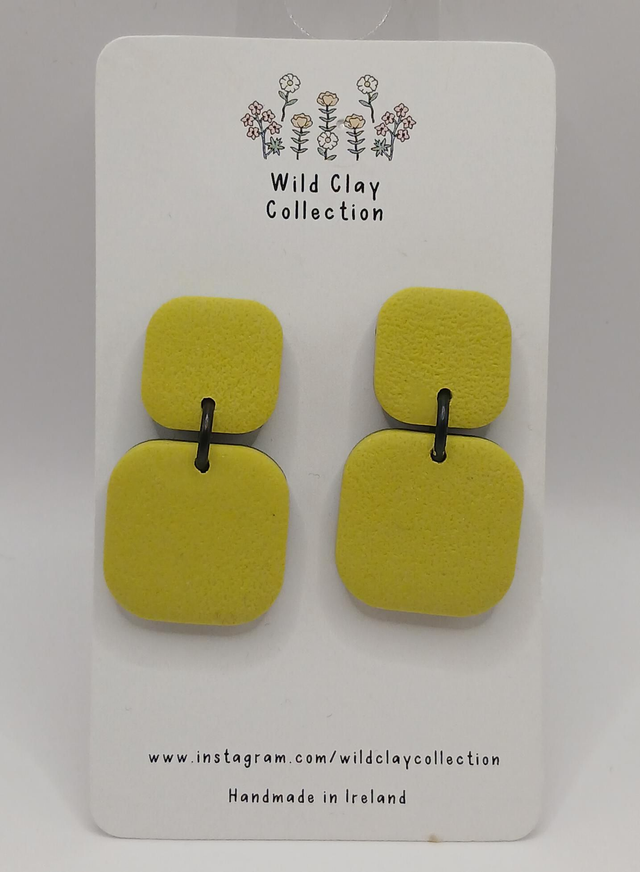 Lime Green Square Dangle. Made from polymer clay with a surgical steel top.