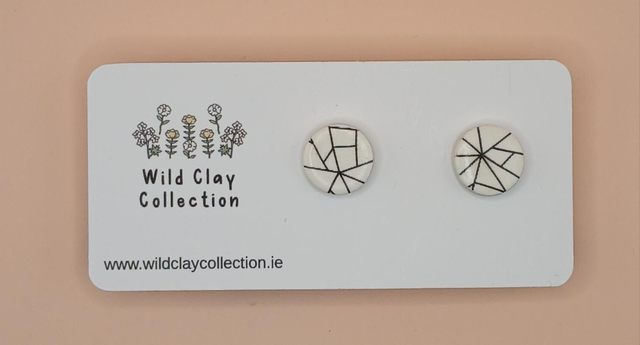 Maze small stud earrings made with polymer clay and a stainless steel finding.