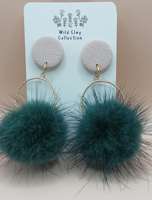 This fun fluffy Dangle Earring is made from Polymer Clay with a Stainless Steel Finding. Top is a baby Pink with a green fluffy ball.