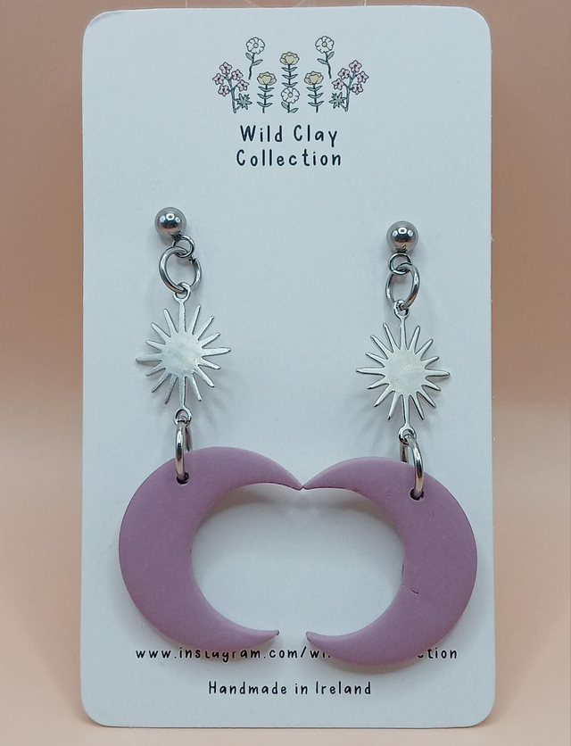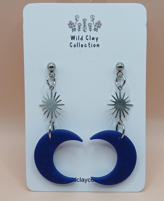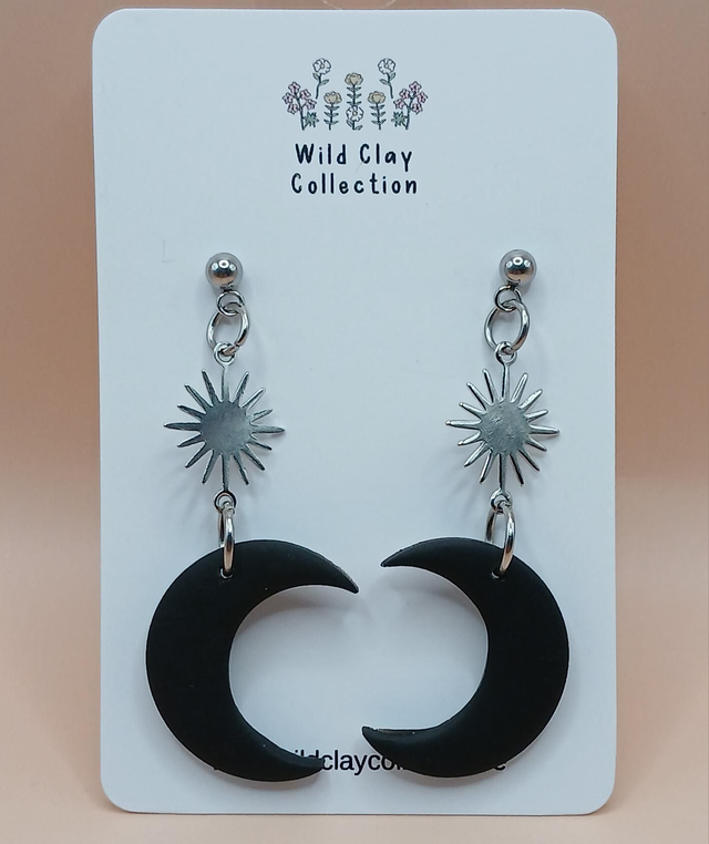 The Sun and Moon Dangle Earring is made from Polymer Clay with stainless steel ball tops.