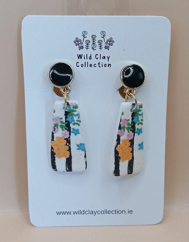Stripe Foral Clip On. Made from polymer clay with a clip on gold plated stainless steel top.