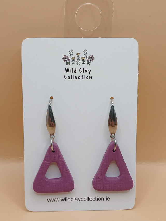 Triangle Silver. Really light weight earring. Made from polymer clay with a surgical steel hook top.