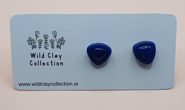 Triangle small stud earrings made with polymer clay and a stainless steel finding.