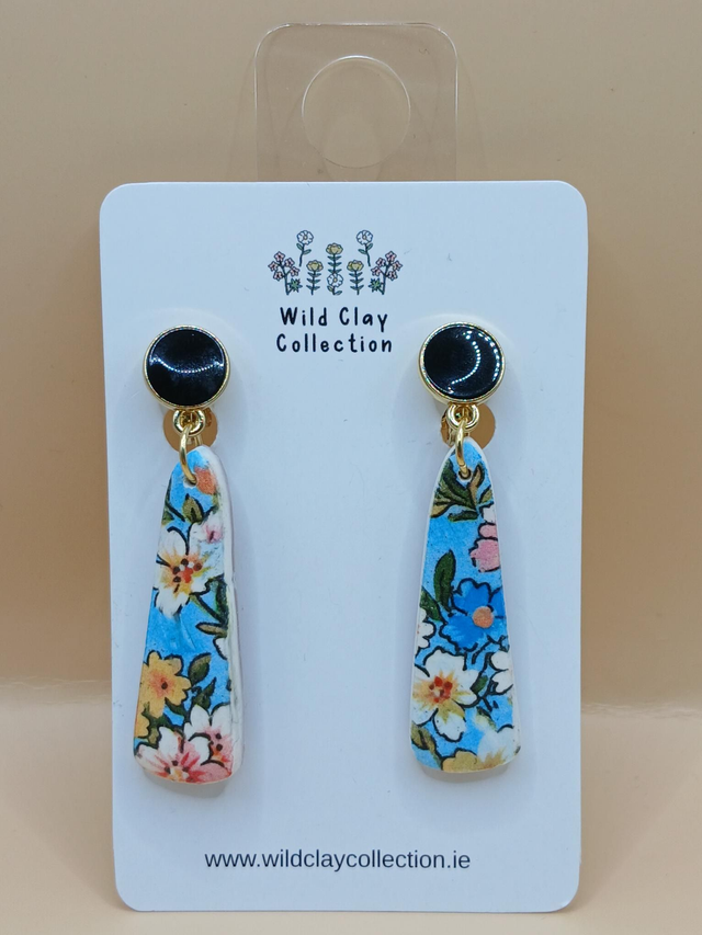 Violet Long Clip On, a beautiful eye catching floral pattern. Top is a clip on made from gold plated stainless steel material.