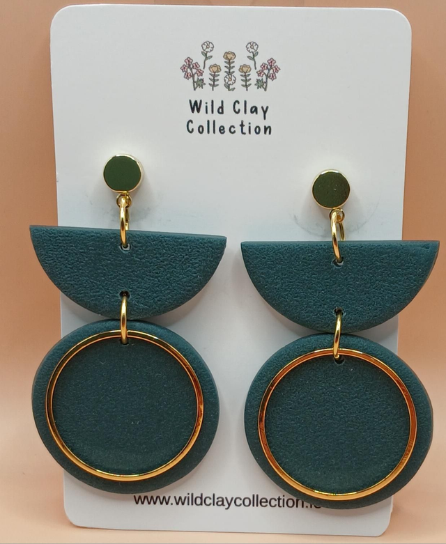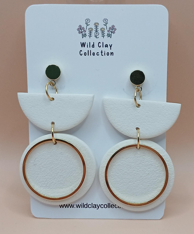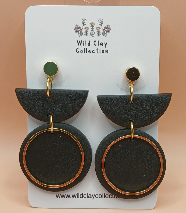 The Willow, a timeless piece. Made from polymer clay with a stainless steel gold plated top and a gold plated circle.